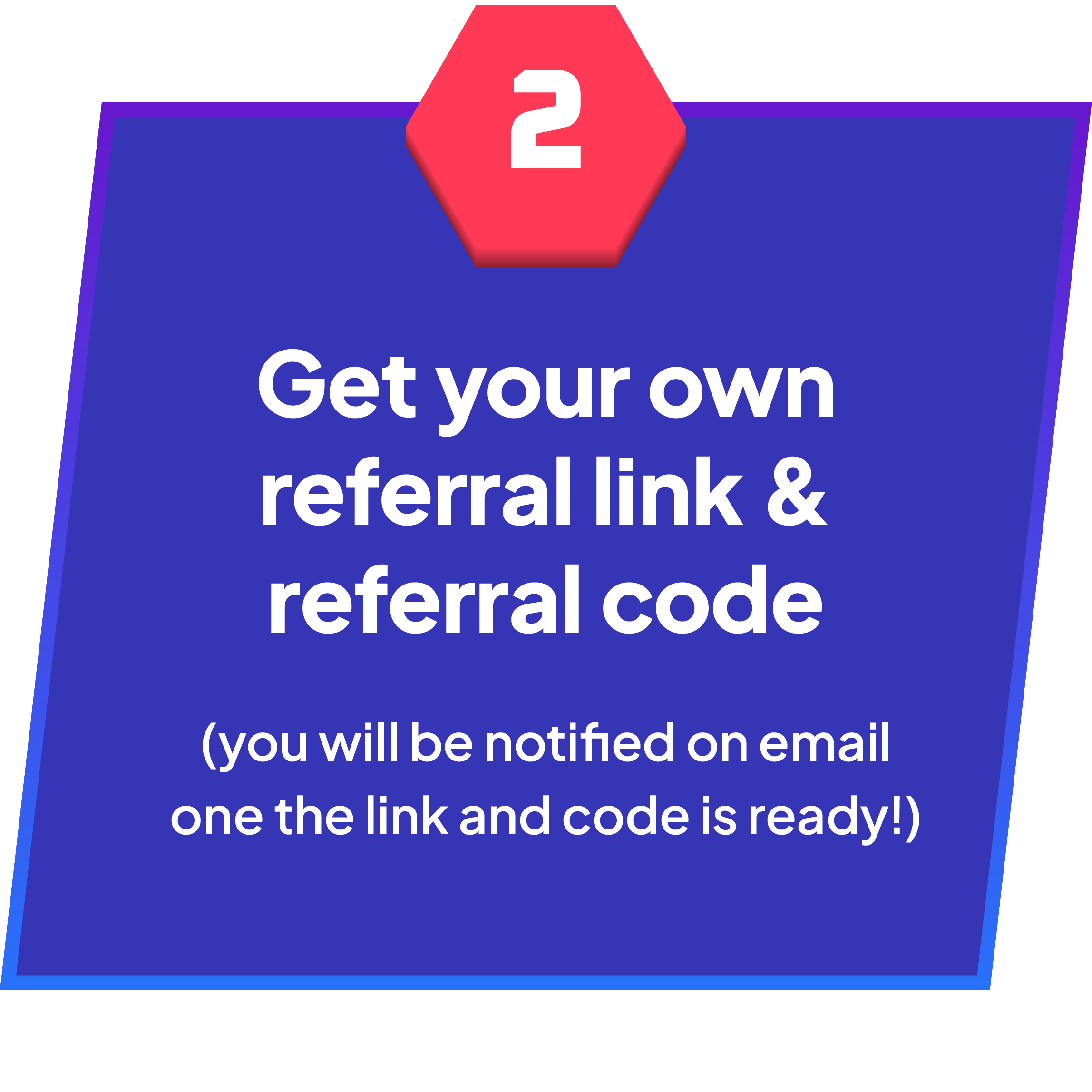 Once registered, you will receive 1 link and 2 referral codes: