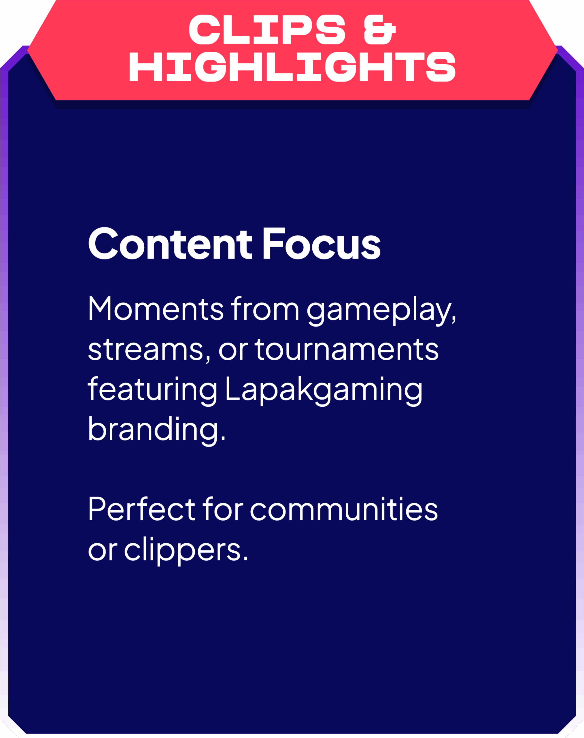 • The Lapakgaming logo must be clearly visible, not blurry, distorted, or covered by any text or elements.
