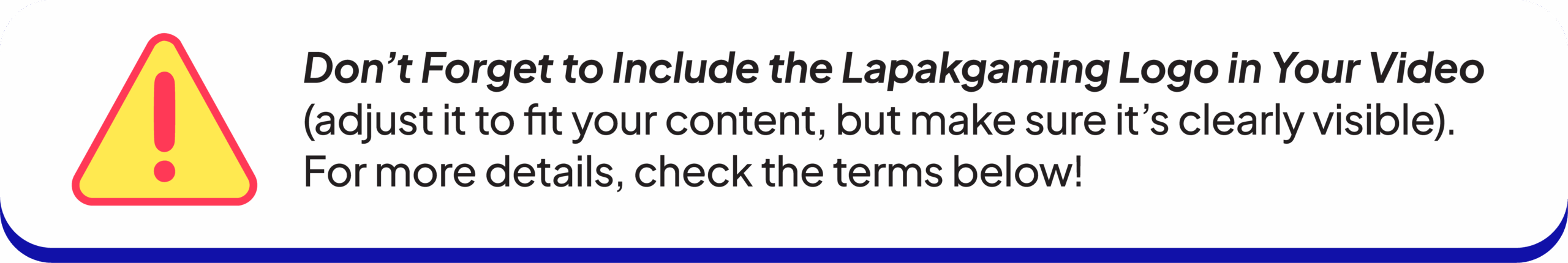 • Don’t forget to add the Lapakgaming logo to your photo/video — make sure it fits the content but remains clearly visible.