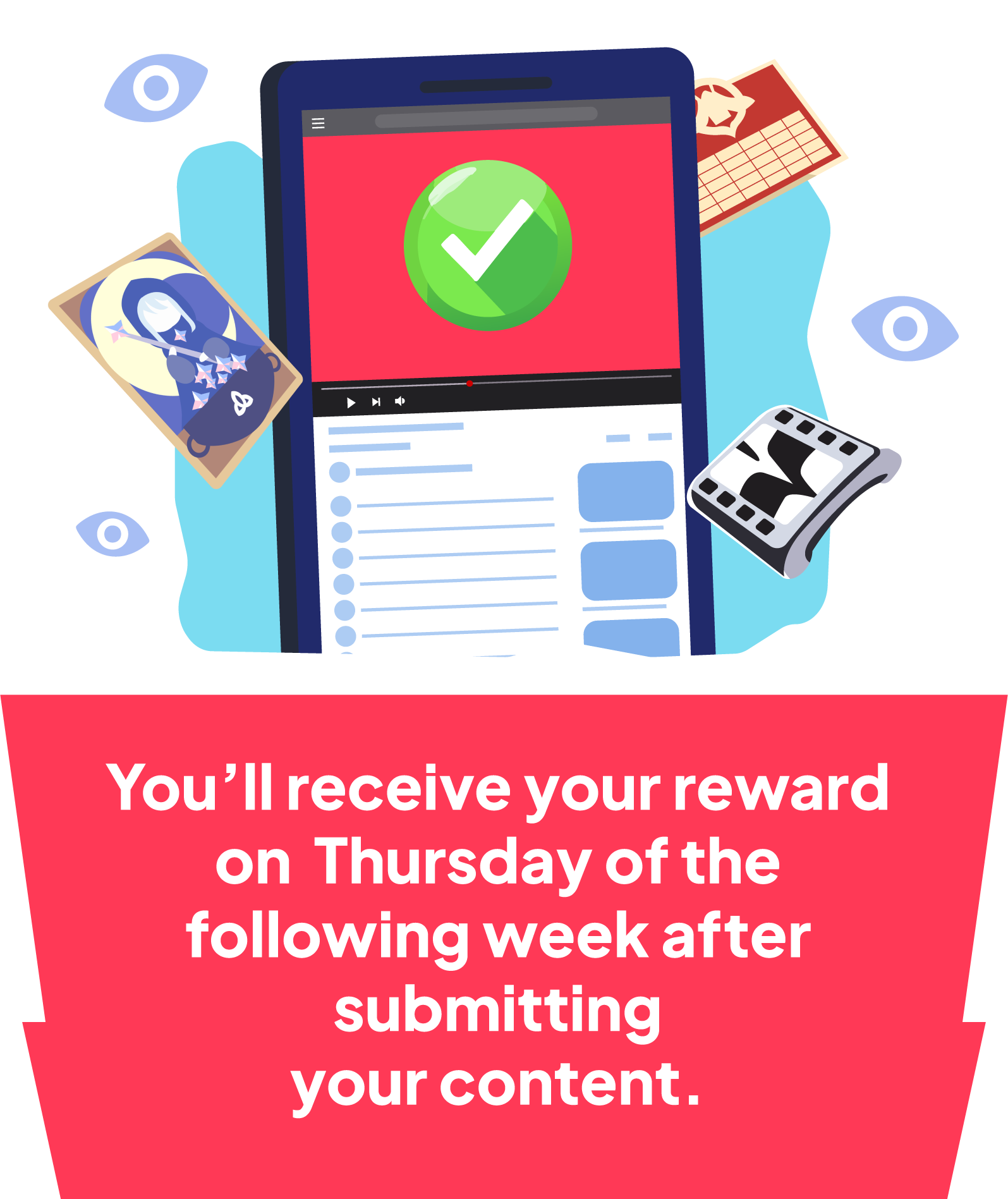 • You’ll receive your reward on Thursday of the following week after submitting your content.