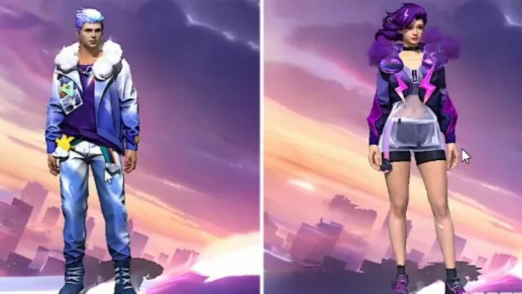 Sementara itu, Thunder Cloud Bundle diperuntukkan untuk karakter wanita. Desainnya lebih dinamis dengan dominasi warna ungu dan simbol petir menyala yang tersebar di berbagai bagian kostum.
