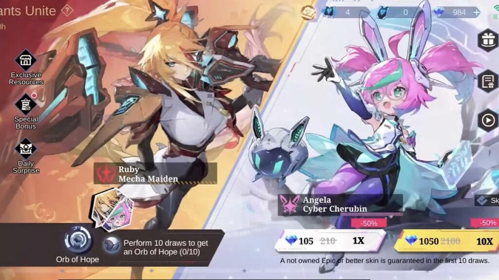 Saat melakukan 10 kali gacha pertama, kamu dijamin akan mendapatkan satu skin epic yang belum kamu miliki.