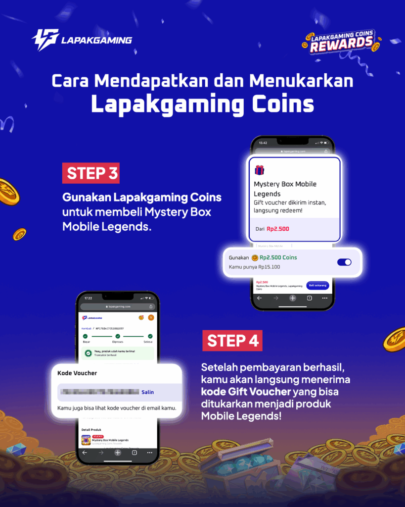 Kamu bisa langsung mendapatkan Kode Gift Voucher setelah menukarkan Lapakgaming Coins dengan Mystery Box, cek hadiah yang bisa kamu dapetin!