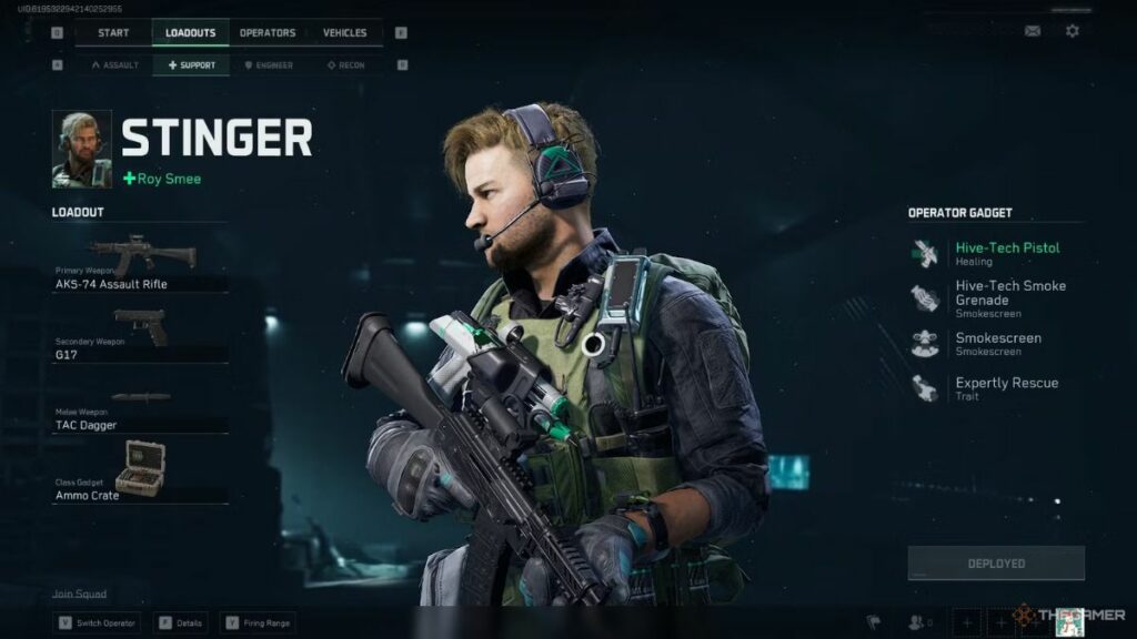 Stinger, yang memiliki nama asli Roy Smee, adalah Operator bertipe Support dalam Garena Delta Force Mobile.