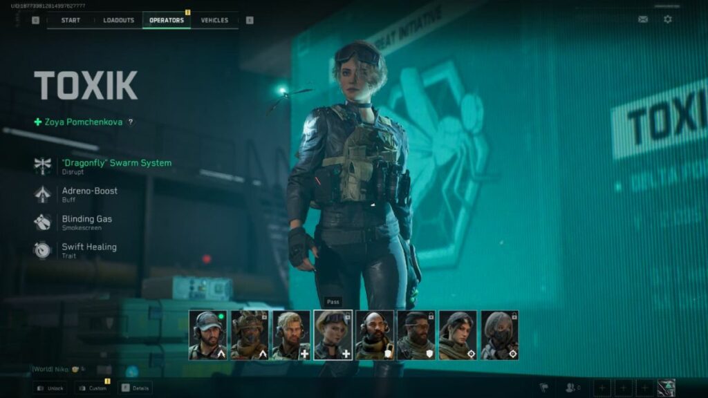 Berperan sebagai Support, Toxik yang memiliki nama asli Zoya Pomchenkova memiliki keunggulan dalam menyelamatkan rekan satu tim dengan lebih cepat dibandingkan kelas lainnya.