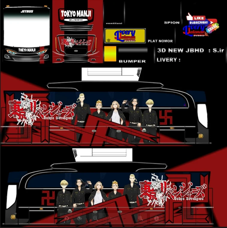 Nah, buat kamu penggemar anime, BUSSID juga menyediakan livery dengan berbagai karakter anime. Berikut daftar lengkapnya.