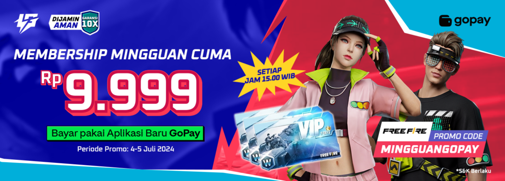 Top up Membership Mingguan FF cuma Rp9,999 dengan menggunakan metode pembayaran Gopay App! Dapatkan juga cashback 90% up to 12ribu Gopay Coins di Gopay App.
