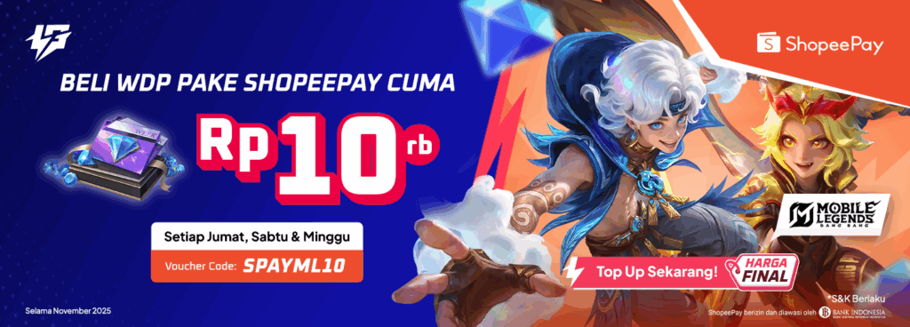 Selama bulan November 2025, nikmati harga spesial untuk top up game favorit tiap akhir pekan pakai ShopeePay di Lapakgaming!