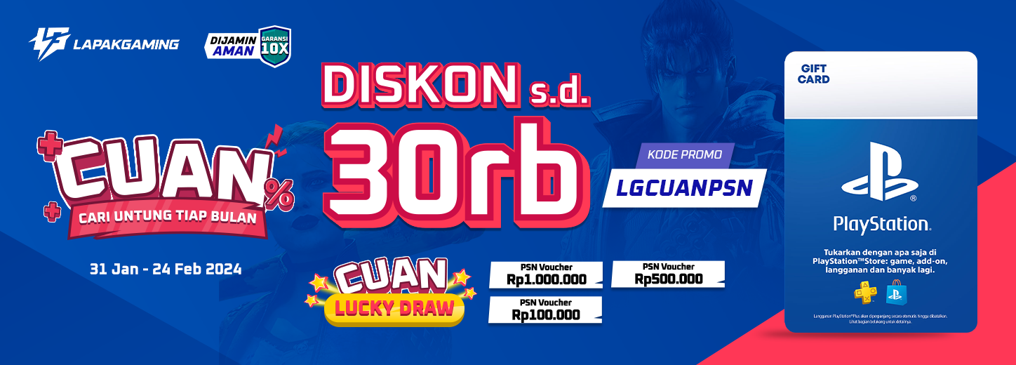 Lapakgaming kembali menghadirkan promo untuk kalian yang sering main game Playstation karena di tanggal 31 Januari sampai 24 Februari 2024 kalian bisa dapetin diskon 5% untuk semua produk Playstation Gift Card dan tambahan Gift Card hingga jutaan rupiah dari Lucky Draw! Catet detailnya di bawah ini!