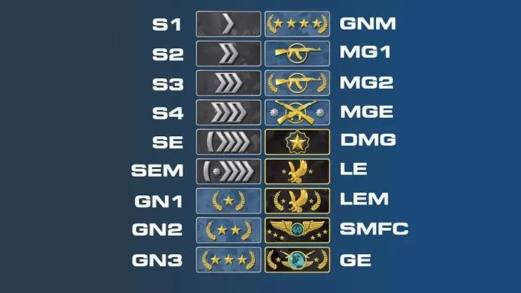 Berikut urutan rank CSGO dari bawah ke atas.