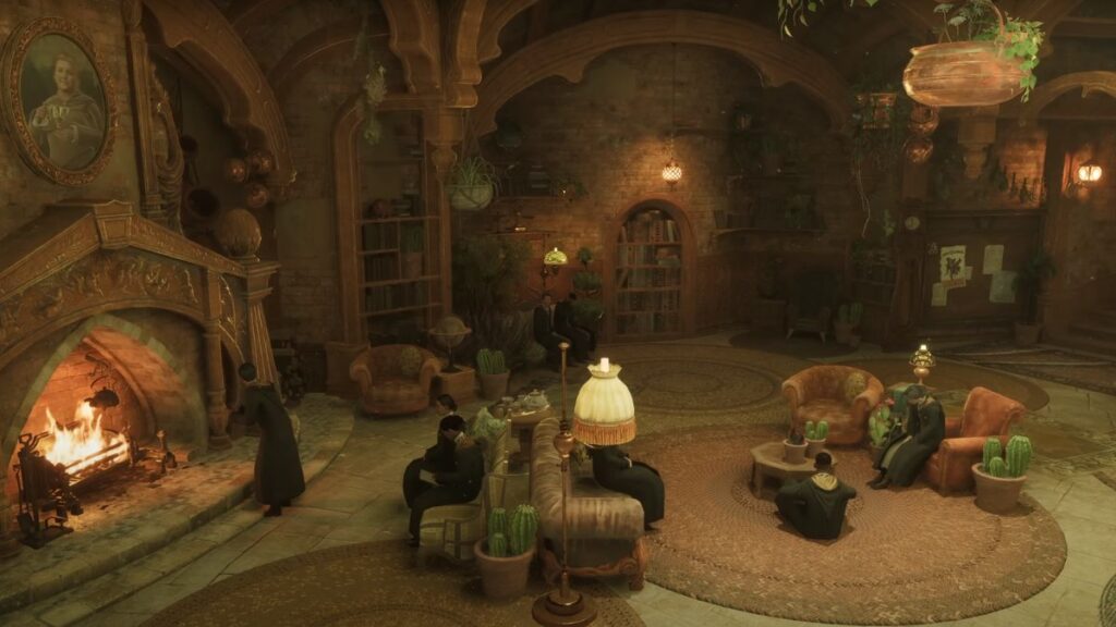 Hufflepuff mungkin sering dianggap sebelah mata, tapi common room-nya di Hogwarts Legacy justru paling hangat dan nyaman. Ruangan ini penuh cahaya hangat, sofa empuk, karpet lembut, dan tanaman yang membuat suasana terasa hidup.
