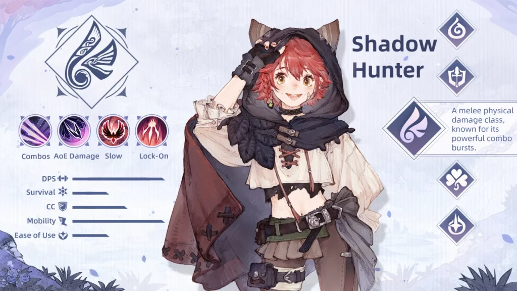 - Shadow Hunter: Assassin dengan Melee Physical DMG yang bisa memberi Burst Attack dan Instant Kill dalam senyap.