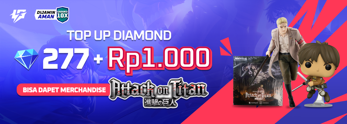1. Produk khusus 277 Diamonds (250+27 diamond) + Lucky Draw AOT Merch