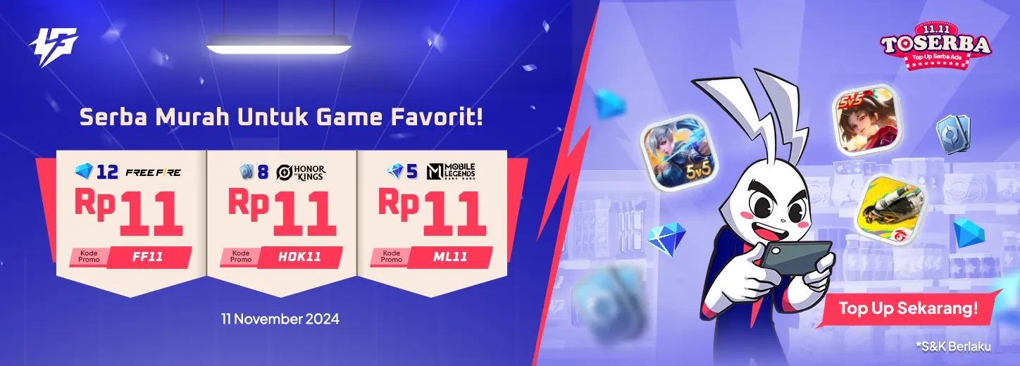 11.11 waktunya promo spesial RP. 11 untuk game MLBB, FF dan HOK