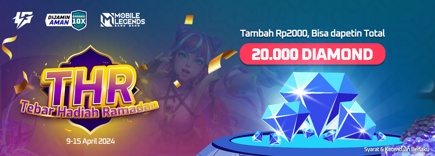 Kalian bisa dapetin tambahan 1050 diamonds dengan menambah Rp2,000 di produk khusus 110 diamond, 278 diamond, atau 568 diamond Mobile Legends mulai tanggal 9 – 15 April 2024. Hadiah akan diundi dan pemenang undian THR akan diumumkan di tanggal 18 April 2024!